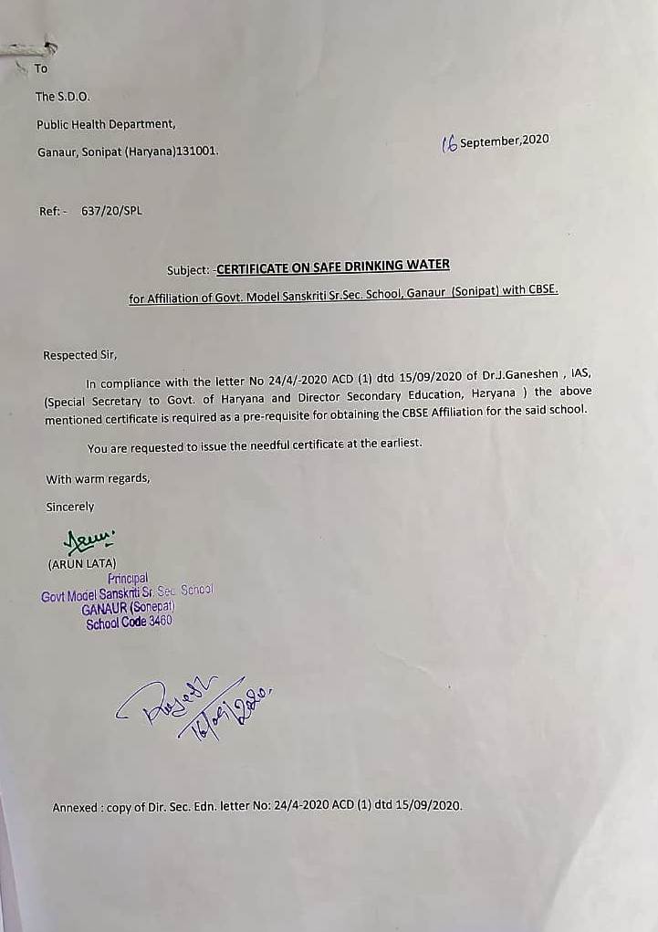 C.B.S.E. Affiliation Letter